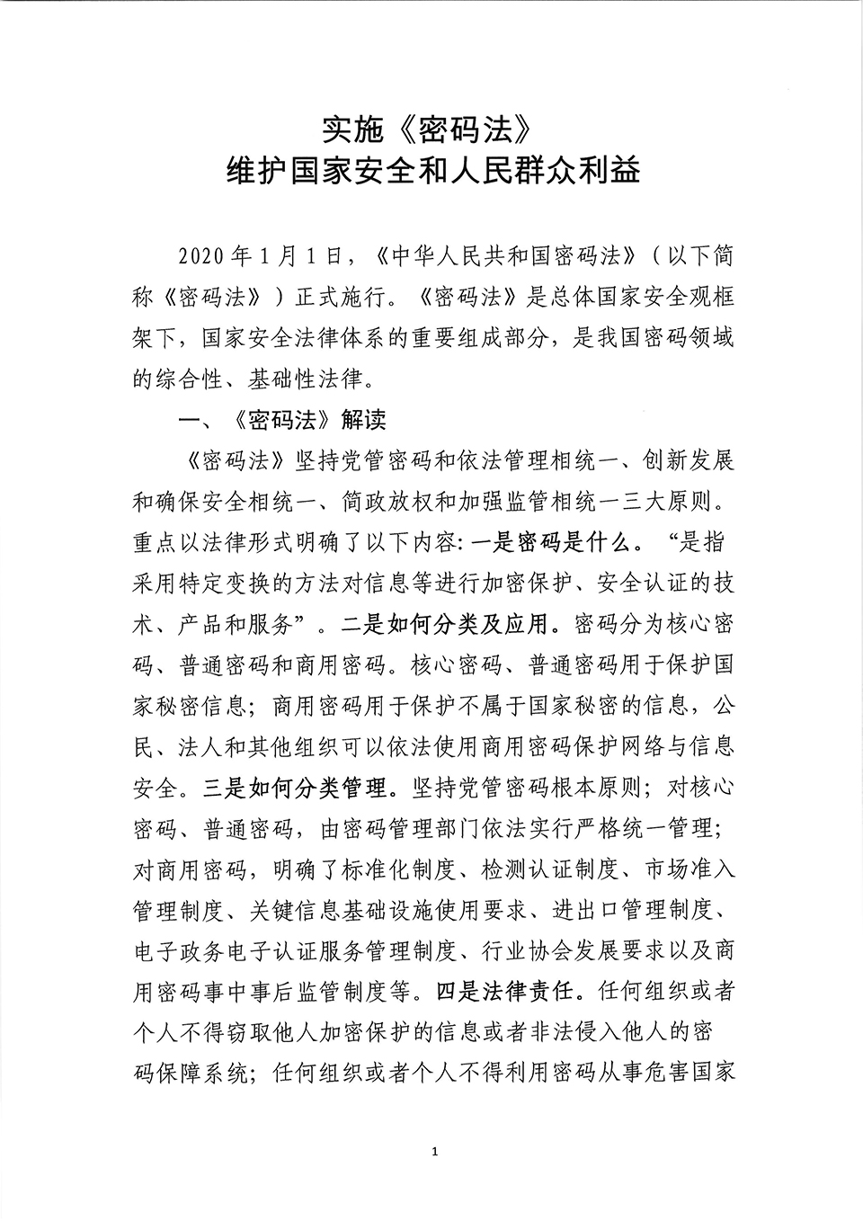 實(shí)施《密碼法》維護(hù)國(guó)家安全和人民群眾利益